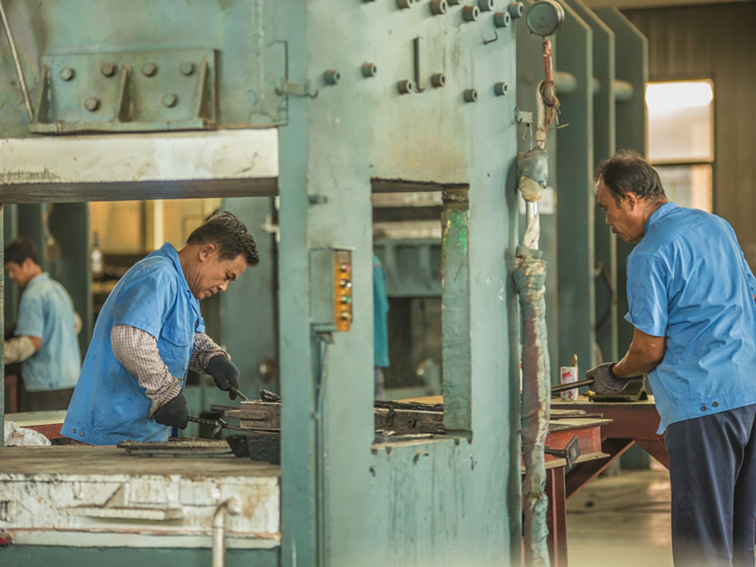 公司擁有模壓制品生產線50條,擁有球磨機、礦山設備等配套模具3000余套,可滿足不同橡膠制品生產需求