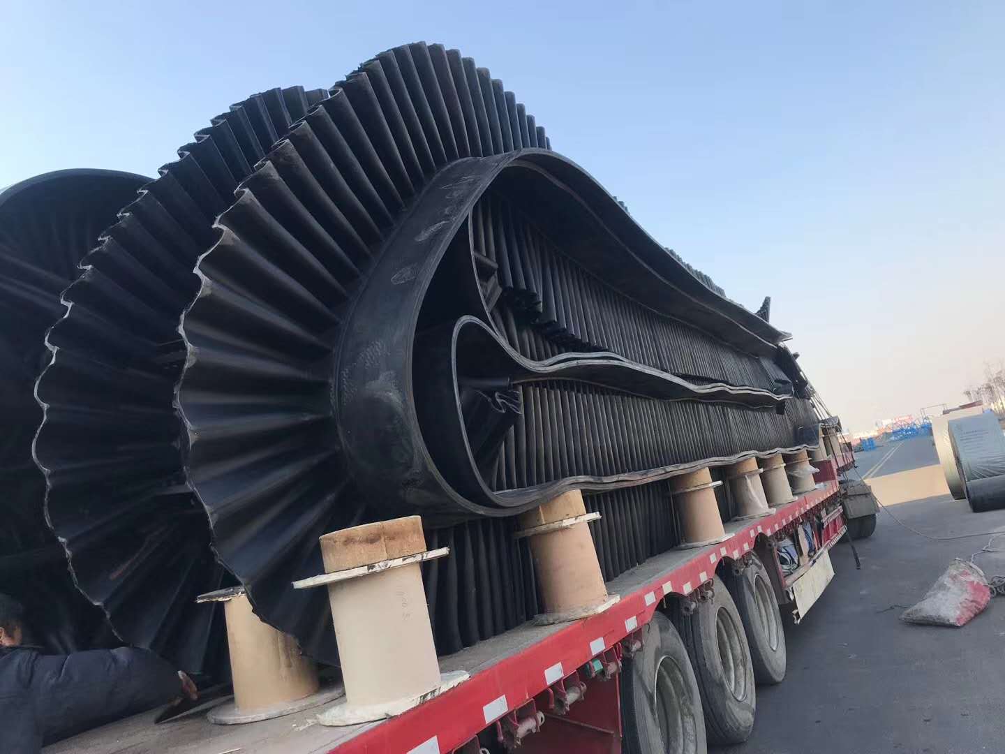 而我們使用耐高溫橡膠制成的耐高溫鋼絲繩提升帶在高溫環境下橡膠可以防止高溫向內部侵蝕,很好的保護了帶體以及內部的布層,讓輸送帶在高溫環境下依舊能夠平穩穩定運輸。耐熱鋼絲繩提升帶讓斗提機鋼絲繩輸送帶突破了高溫的限制,大大提升了水泥廠水泥熟料的運輸效率,提升其使用周期,降低橡膠的老化。