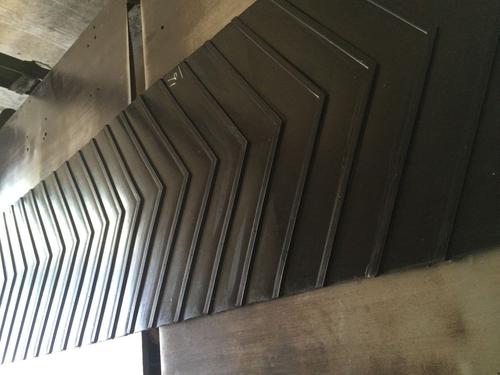 人字型輸送帶也分為凸人字花紋和凹人字花紋兩種,凸人字花紋輸送帶的花紋略高于基帶,一般會有5毫米,10毫米,15毫米,20毫米,25毫米,30毫米等多種不同的規格型號,一般15毫米高的就用的比較少了,很少能生產,而我們的模具可以達到30高。凹人字花紋輸送帶一般要比基帶矮2毫米左右。